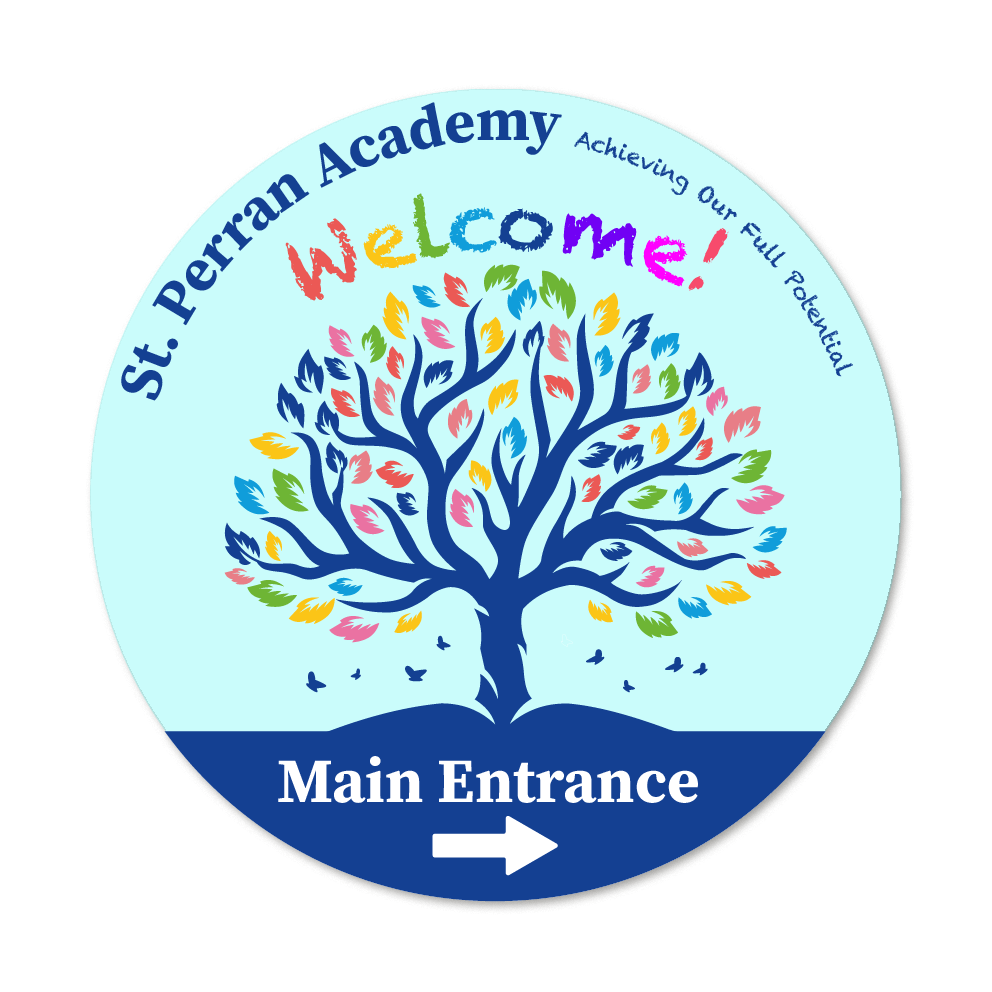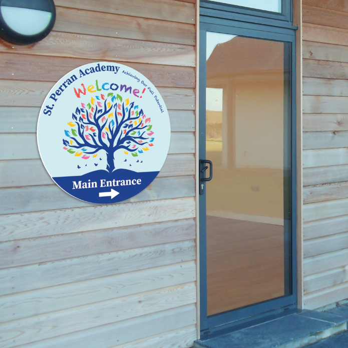 Bespoke welcome sign featuring your school name, direction, ethos, logo and colours!