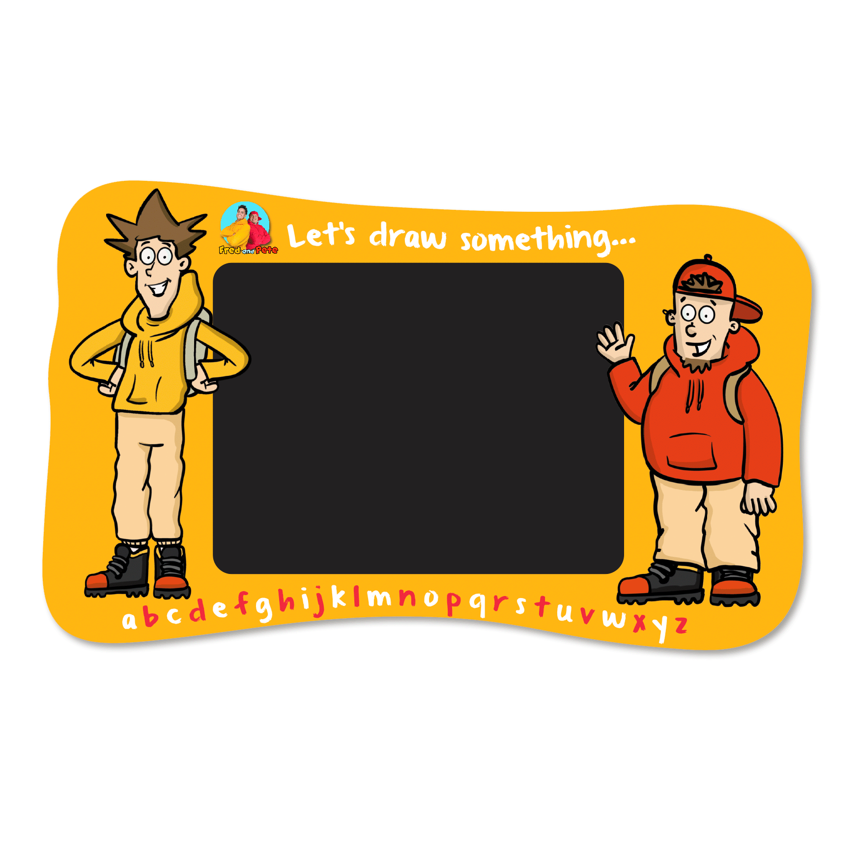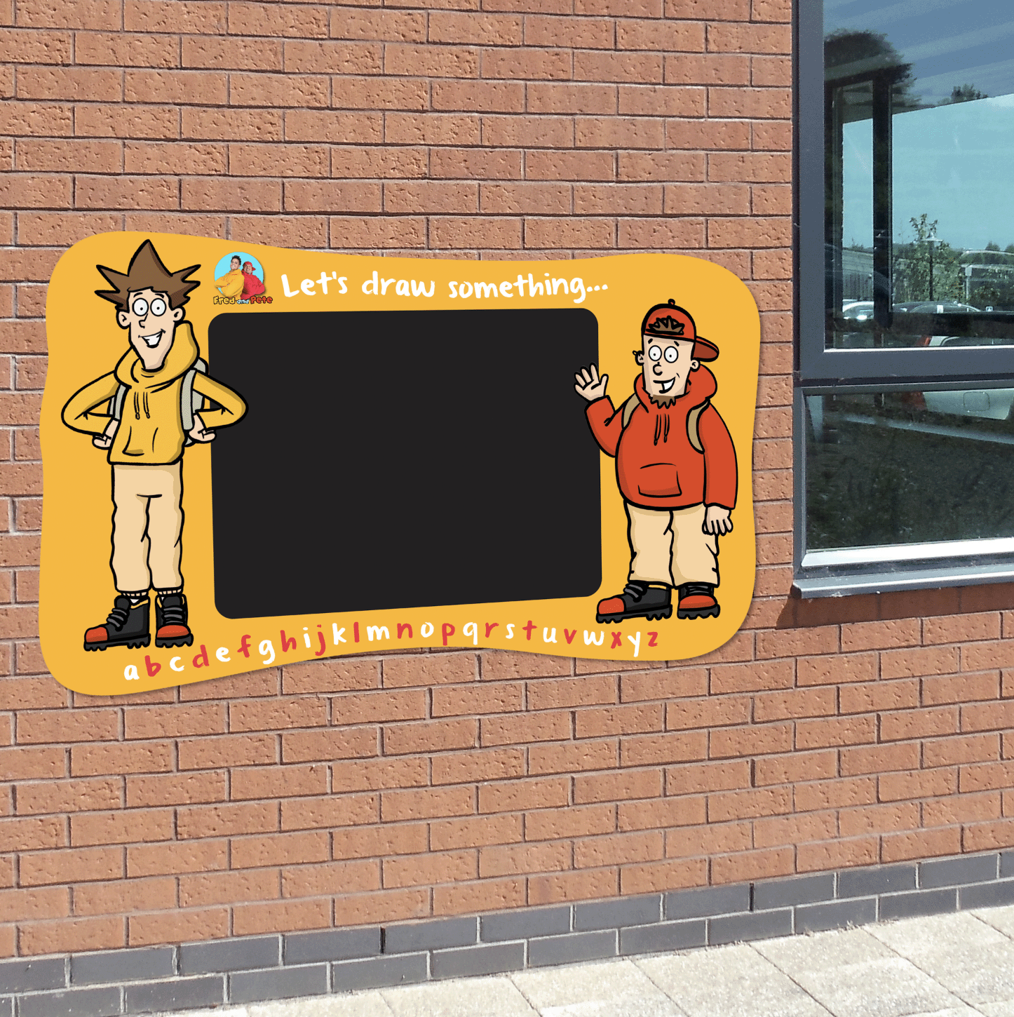 Let's get drawing! This brilliant outdoor chalkboard features cartoon Fred and Pete an alphabet and plenty of space to draw whatver you fancy! Top quality, tough outdoor panel. Pre-drilled and ready to put up, it is completely waterproof, plus its weather and fade resistant. Available in three sizes: