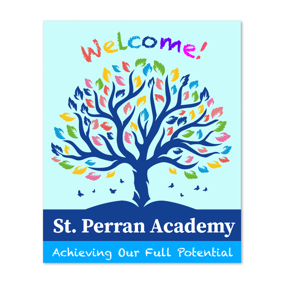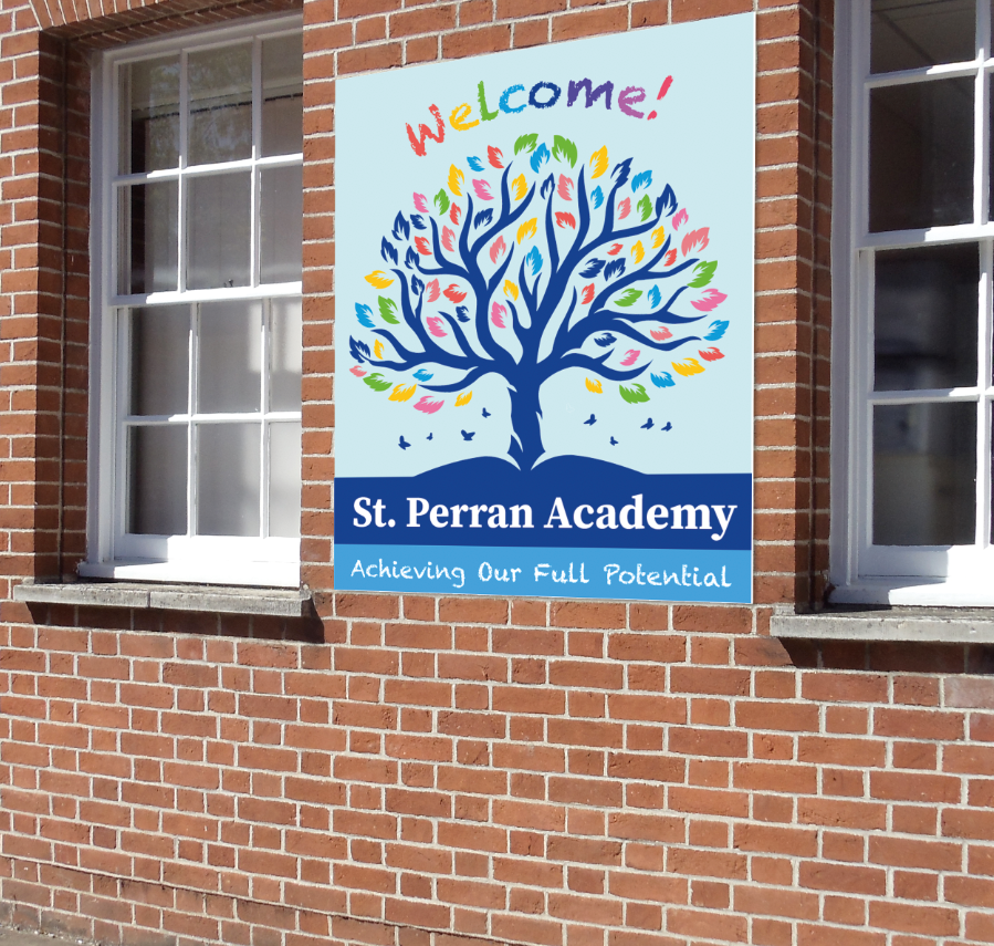 Bespoke welcome sign featuring your school name, ethos, logo and colours!