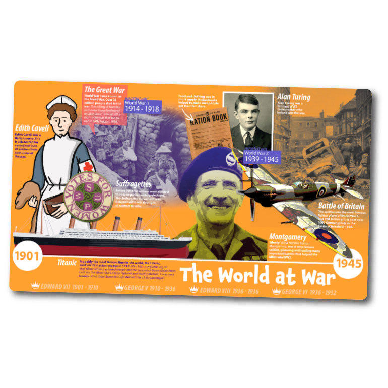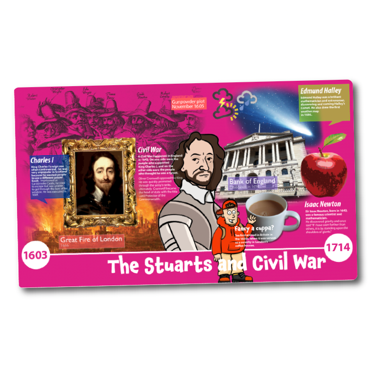 Check out this amazing timeline featuring key events, people, inventions and more from over 7,000 years of British history! Each of the 12 panels is lavishly illustrated and covers key periods in Britain's history from the building of Stonehenge to the accession of King Charles III.