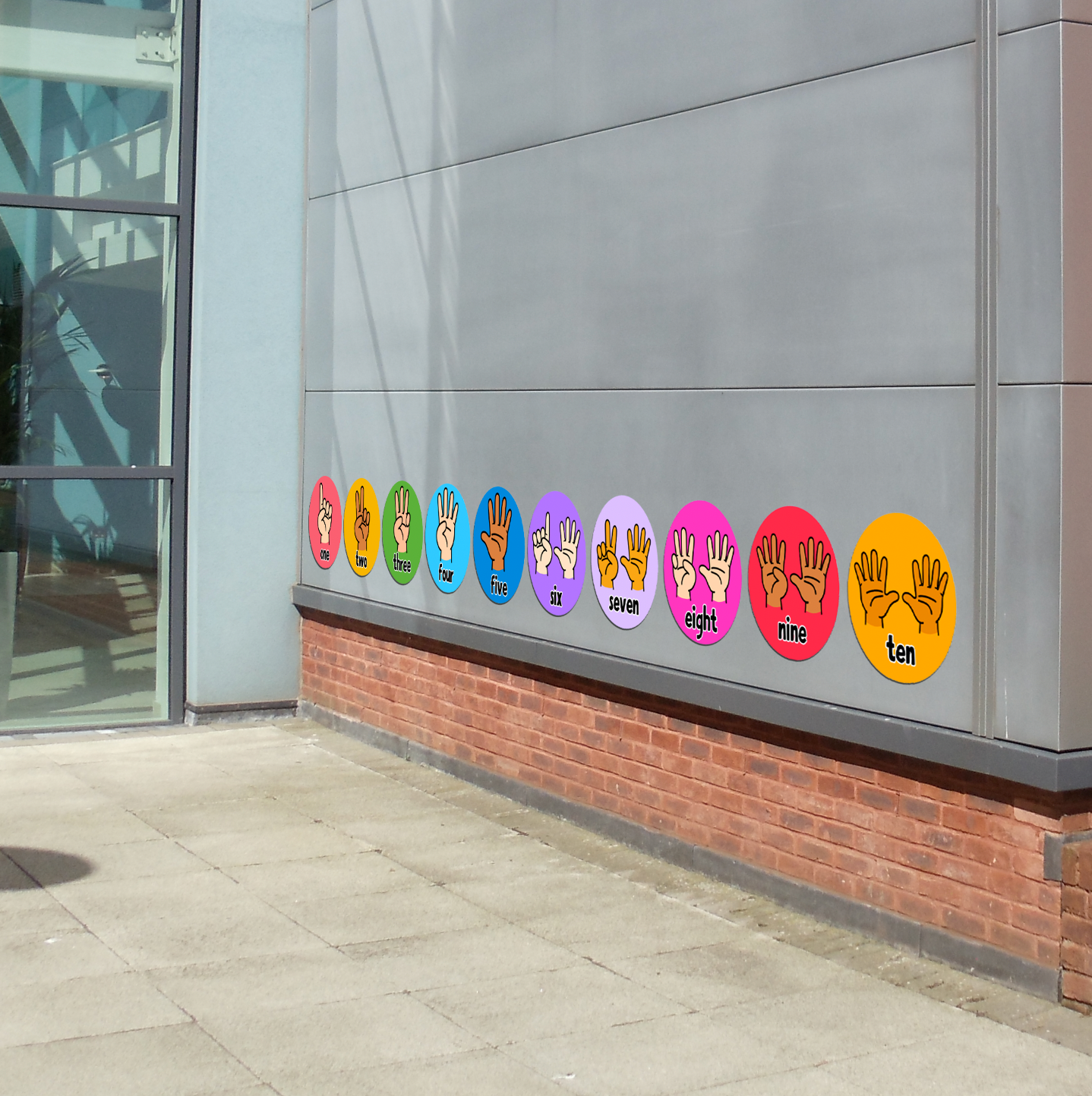 Set of 10 Bright & Cheerful Counting Signs – Featuring Finger Counting Illustrations!