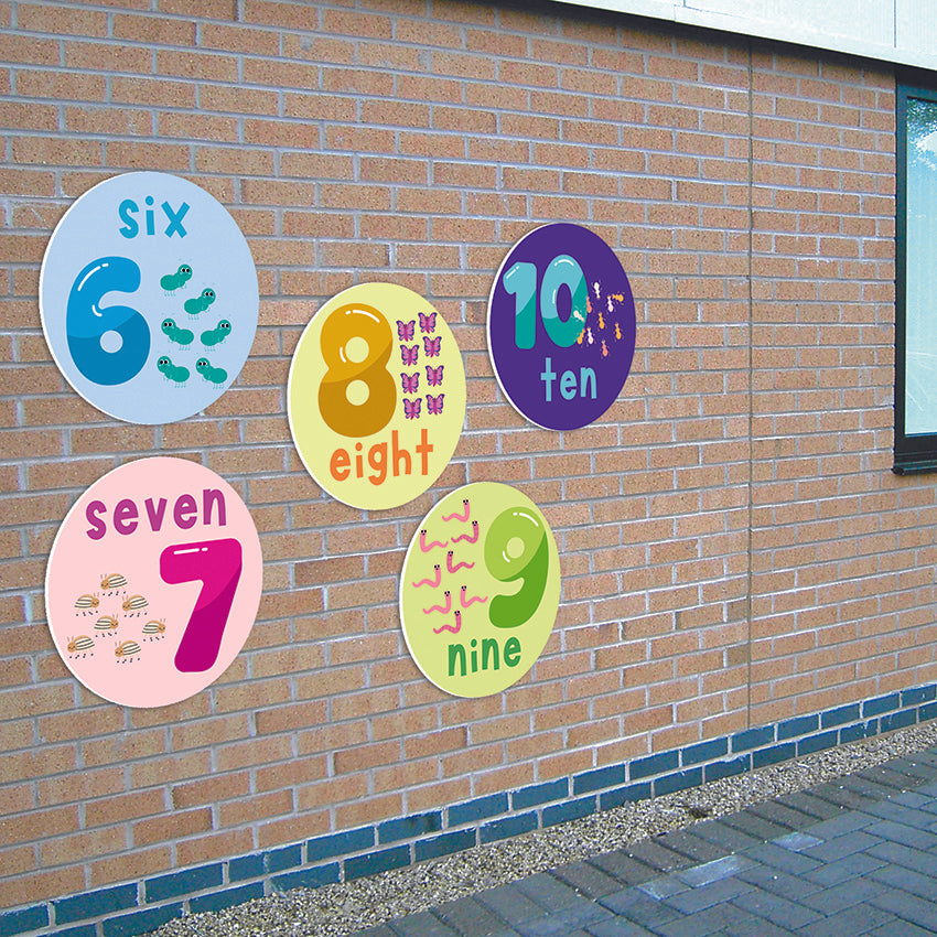 Set of 5 cute colourful counting signs, featuring illustrated minibeasts!